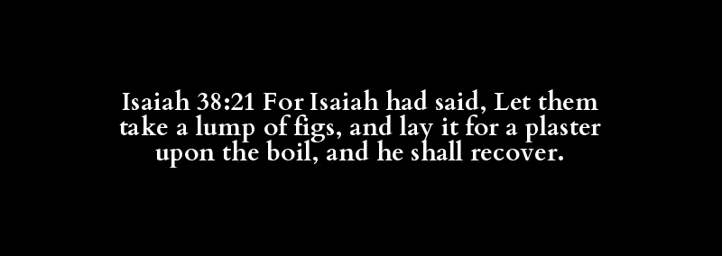 Isaiah 38:21 For Isaiah had said, Let them take a lump of figs, and lay it for a plaster upon the boil, and he shall recover.