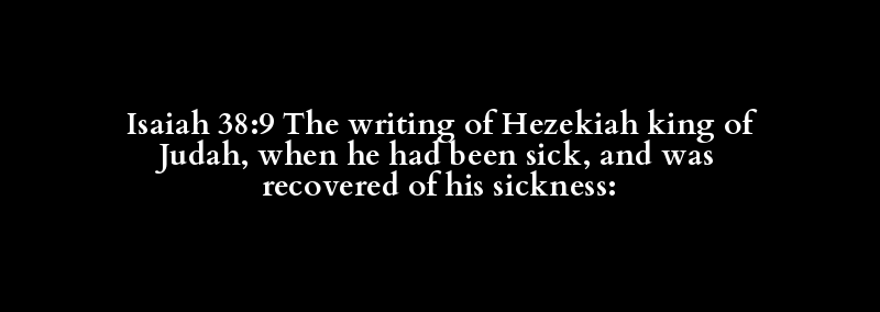Isaiah 38:9 The writing of Hezekiah king of Judah, when he had been sick, and was recovered of his sickness: