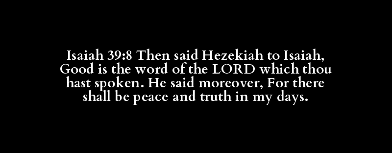Isaiah 39:8 Then said Hezekiah to Isaiah, Good is the word of the LORD which thou hast spoken. He said moreover, For there shall be peace and truth in my days.