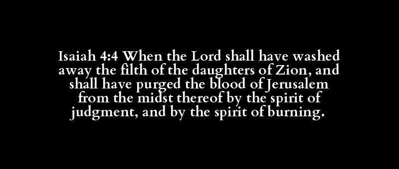 Isaiah 4:4 When the Lord shall have washed away the filth of the daughters of Zion, and shall have purged the blood of Jerusalem from the midst thereof by the spirit of judgment, and by the spirit of burning.