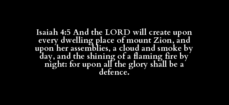 | יְהֹוָה | בָּרָא | מָכוֹן | הַר | צִיּוֹן | מִקְרָא | עָנָן | עָשָׁן | יוֹמָם | נֹגַהּ | לֶהָבָה | אֵשׁ | לַיִל | כָּבוֹד | חֻפָּה |