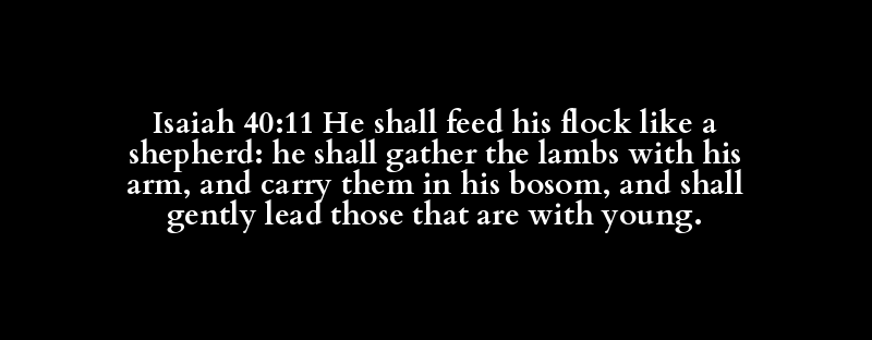 Isaiah 40:11 He shall feed his flock like a shepherd: he shall gather the lambs with his arm, and carry them in his bosom, and shall gently lead those that are with young.