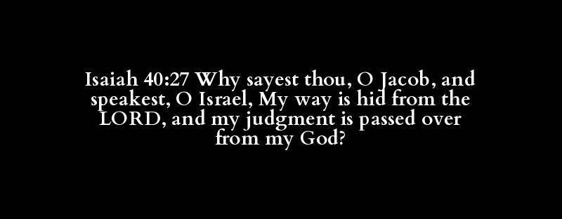 Isaiah 40:27 Why sayest thou, O Jacob, and speakest, O Israel, My way is hid from the LORD, and my judgment is passed over from my God?