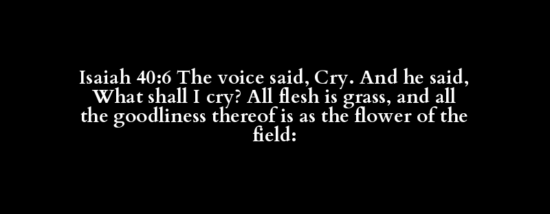 Isaiah 40:6 The voice said, Cry. And he said, What shall I cry? All flesh is grass, and all the goodliness thereof is as the flower of the field: