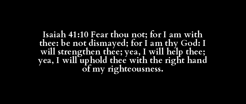 Isaiah 41:10 Fear thou not; for I am with thee: be not dismayed; for I am thy God: I will strengthen thee; yea, I will help thee; yea, I will uphold thee with the right hand of my righteousness.
