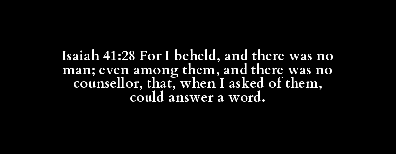 Isaiah 41:28 For I beheld, and there was no man; even among them, and there was no counsellor, that, when I asked of them, could answer a word.