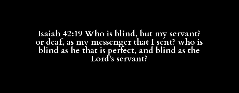 Isaiah 42:19 Who is blind, but my servant? or deaf, as my messenger that I sent? who is blind as he that is perfect, and blind as the Lord's servant?