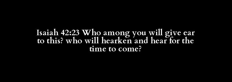 Isaiah 42:23 Who among you will give ear to this? who will hearken and hear for the time to come?
