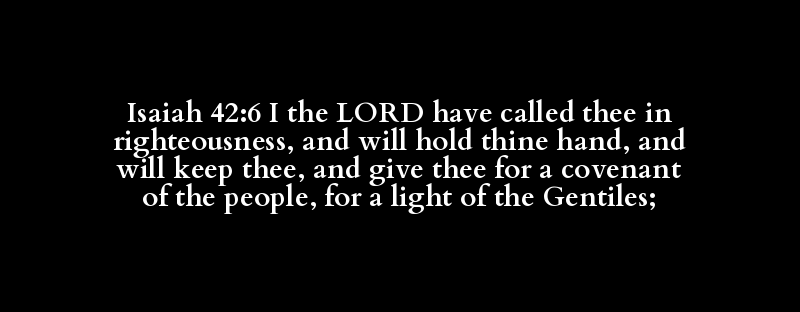 Isaiah 42:6 I the LORD have called thee in righteousness, and will hold thine hand, and will keep thee, and give thee for a covenant of the people, for a light of the Gentiles;