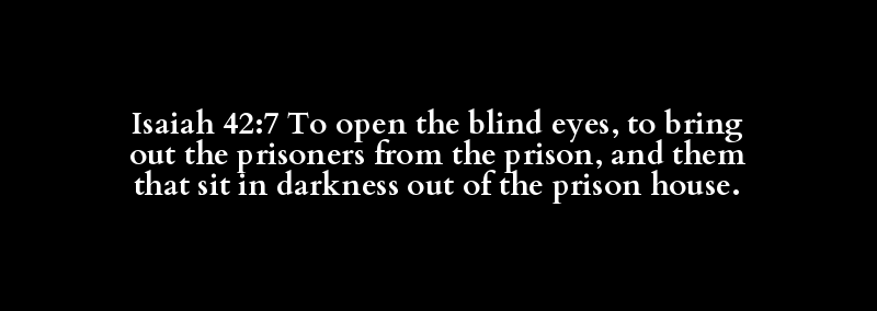 Isaiah 42:7 To open the blind eyes, to bring out the prisoners from the prison, and them that sit in darkness out of the prison house.