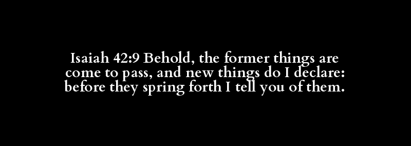 Isaiah 42:9 Behold, the former things are come to pass, and new things do I declare: before they spring forth I tell you of them.
