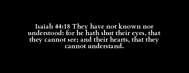 Isaiah 44:18 They have not known nor understood: for he hath shut their eyes, that they cannot see; and their hearts, that they cannot understand.