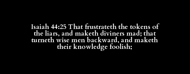 Isaiah 44:25 That frustrateth the tokens of the liars, and maketh diviners mad; that turneth wise men backward, and maketh their knowledge foolish;