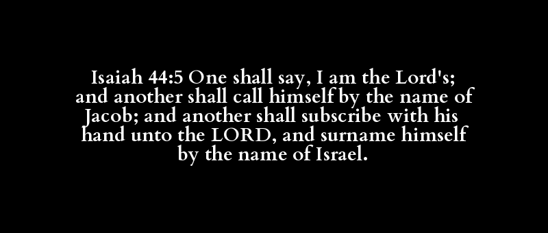 Isaiah 44:5 One shall say, I am the Lord's; and another shall call himself by the name of Jacob; and another shall subscribe with his hand unto the LORD, and surname himself by the name of Israel.