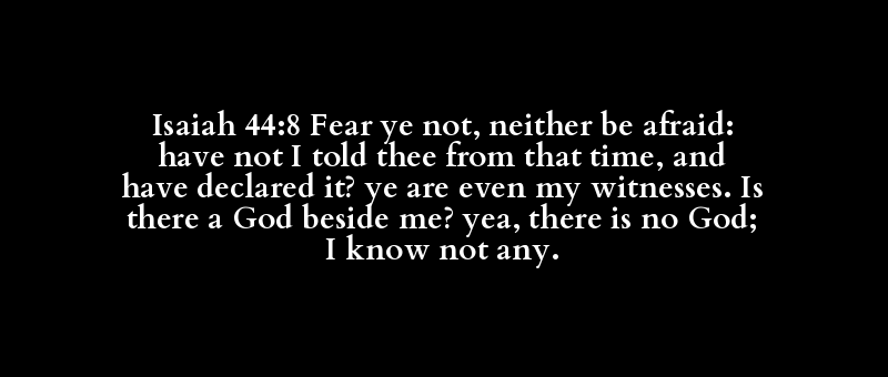 Isaiah 44:8 Fear ye not, neither be afraid: have not I told thee from that time, and have declared it? ye are even my witnesses. Is there a God beside me? yea, there is no God; I know not any.