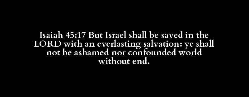 Isaiah 45:17 But Israel shall be saved in the LORD with an everlasting salvation: ye shall not be ashamed nor confounded world without end.