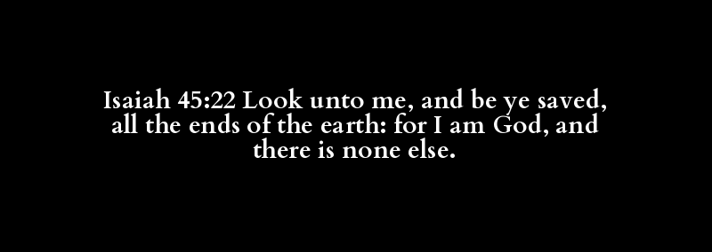 Isaiah 45:22 Look unto me, and be ye saved, all the ends of the earth: for I am God, and there is none else.