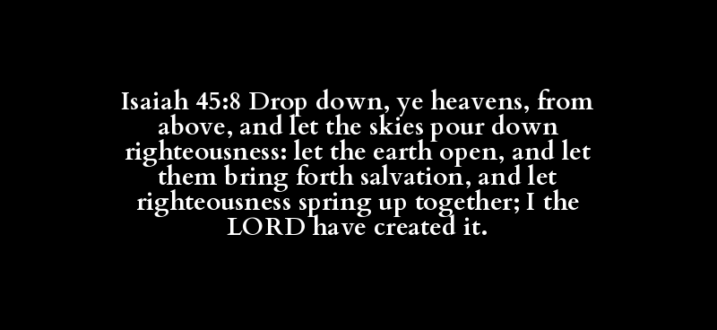 | distil, drop (down) | universe/heaven/sky | above, exceeding(-ly), forward, on (× .. | cloud, small dust, heaven, sky | distil, drop, flood, (cause to) flow(-.. | × even, (× that which is altogether) j.. | earth | appear, break forth, draw (out), let g.. | bear, bring forth (fruit), (be, cause .. | safety, salvation, saving | justice, moderately, right(-eous, -ly,.. | bear, bring forth, (cause to, make to).. | alike, at all (once), both, likewise, .. | "The Holy Creator of the Universe yeh-.. | create |