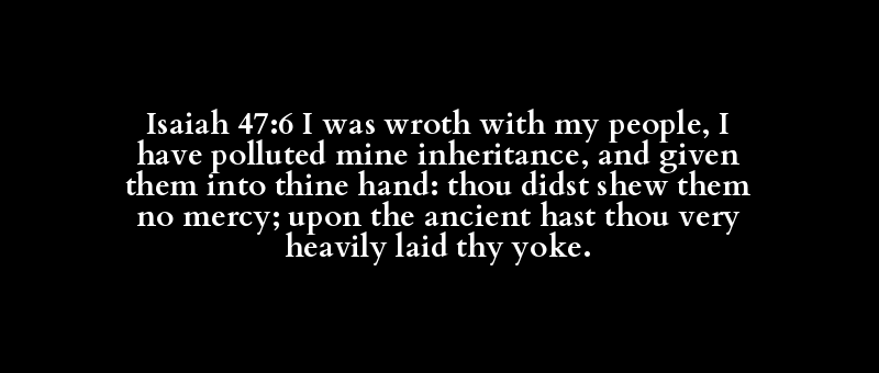 Isaiah 47:6 I was wroth with my people, I have polluted mine inheritance, and given them into thine hand: thou didst shew them no mercy; upon the ancient hast thou very heavily laid thy yoke.
