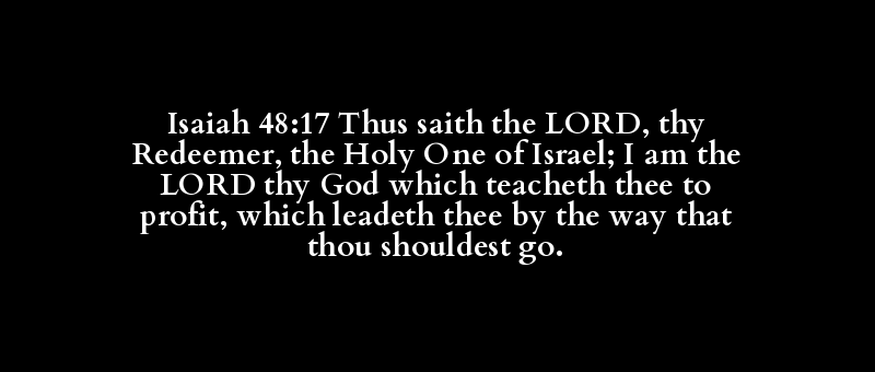Isaiah 48:17 Thus saith the LORD, thy Redeemer, the Holy One of Israel; I am the LORD thy God which teacheth thee to profit, which leadeth thee by the way that thou shouldest go.