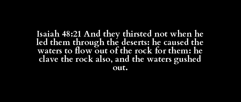 Isaiah 48:21 And they thirsted not when he led them through the deserts: he caused the waters to flow out of the rock for them: he clave the rock also, and the waters gushed out.