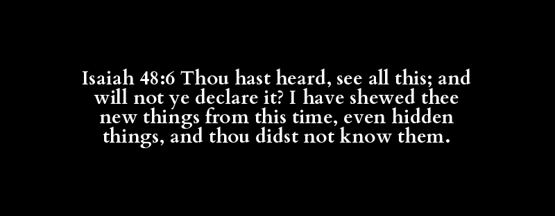 Isaiah 48:6 Thou hast heard, see all this; and will not ye declare it? I have shewed thee new things from this time, even hidden things, and thou didst not know them.