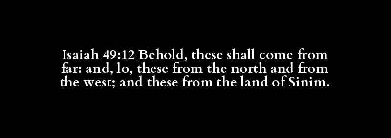 Isaiah 49:12 Behold, these shall come from far: and, lo, these from the north and from the west; and these from the land of Sinim.