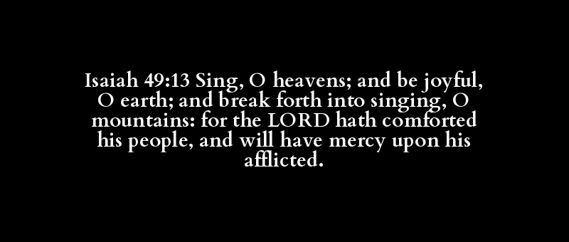 | רָנַן | שָׁמַיִם | גִּיל | אֶרֶץ | פָּצַח | רִנָּה | הַר | יְהֹוָה | נָחַם | עַם | רָחַם | עָנִי |