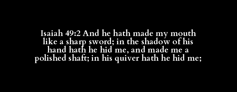 Isaiah 49:2 And he hath made my mouth like a sharp sword; in the shadow of his hand hath he hid me, and made me a polished shaft; in his quiver hath he hid me;