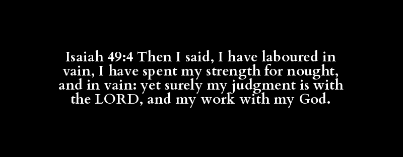 Isaiah 49:4 Then I said, I have laboured in vain, I have spent my strength for nought, and in vain: yet surely my judgment is with the LORD, and my work with my God.
