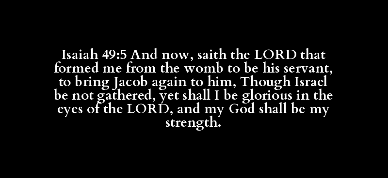 Isaiah 49:5 And now, saith the LORD that formed me from the womb to be his servant, to bring Jacob again to him, Though Israel be not gathered, yet shall I be glorious in the eyes of the LORD, and my God shall be my strength.