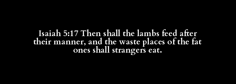 Isaiah 5:17 Then shall the lambs feed after their manner, and the waste places of the fat ones shall strangers eat.