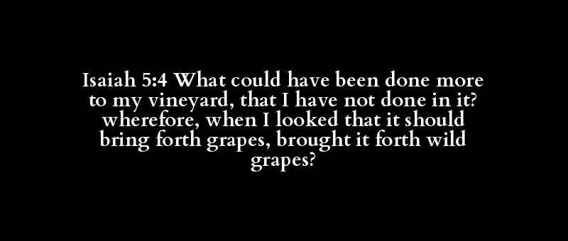 Isaiah 5:4 What could have been done more to my vineyard, that I have not done in it? wherefore, when I looked that it should bring forth grapes, brought it forth wild grapes?