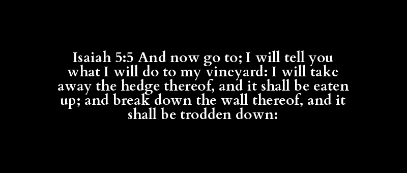 Isaiah 5:5 And now go to; I will tell you what I will do to my vineyard: I will take away the hedge thereof, and it shall be eaten up; and break down the wall thereof, and it shall be trodden down: