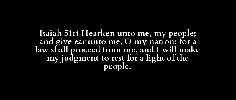 Isaiah 51:4 Hearken unto me, my people; and give ear unto me, O my nation: for a law shall proceed from me, and I will make my judgment to rest for a light of the people.