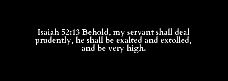 Isaiah 52:13 Behold, my servant shall deal prudently, he shall be exalted and extolled, and be very high.