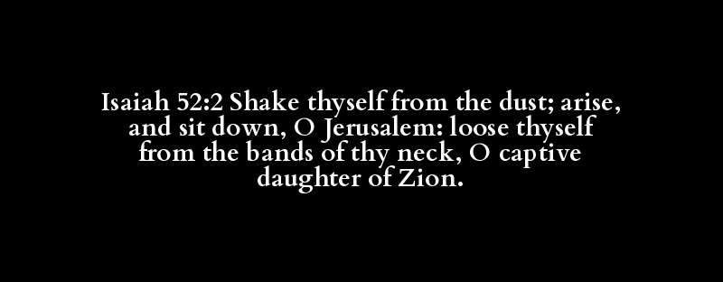 Isaiah 52:2 Shake thyself from the dust; arise, and sit down, O Jerusalem: loose thyself from the bands of thy neck, O captive daughter of Zion.
