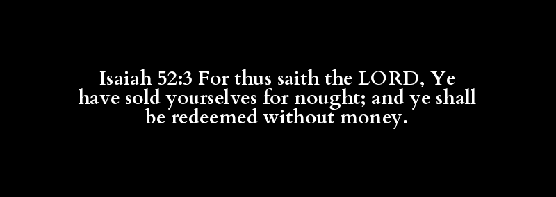 Isaiah 52:3 For thus saith the LORD, Ye have sold yourselves for nought; and ye shall be redeemed without money.