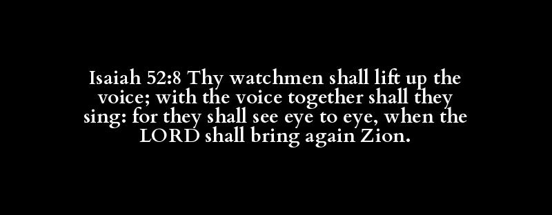 Isaiah 52:8 Thy watchmen shall lift up the voice; with the voice together shall they sing: for they shall see eye to eye, when the LORD shall bring again Zion.