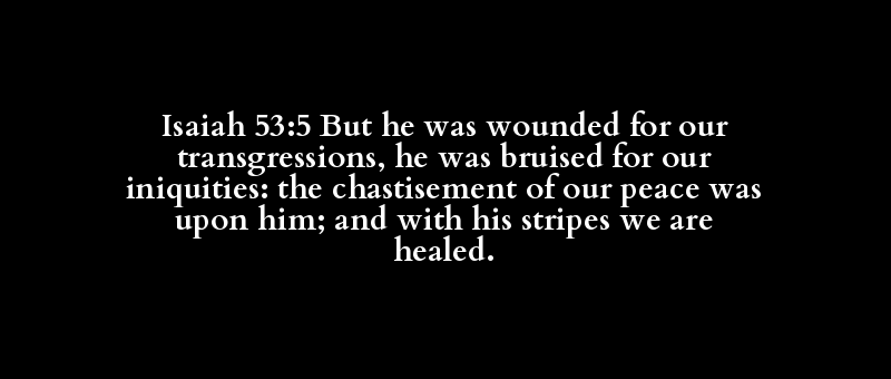 Isaiah 53:5 But he was wounded for our transgressions, he was bruised for our iniquities: the chastisement of our peace was upon him; and with his stripes we are healed.