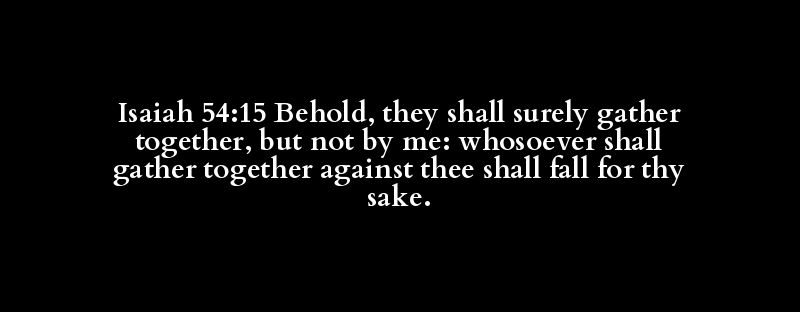 Isaiah 54:15 Behold, they shall surely gather together, but not by me: whosoever shall gather together against thee shall fall for thy sake.