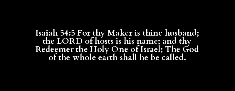 Isaiah 54:5 For thy Maker is thine husband; the LORD of hosts is his name; and thy Redeemer the Holy One of Israel; The God of the whole earth shall he be called.