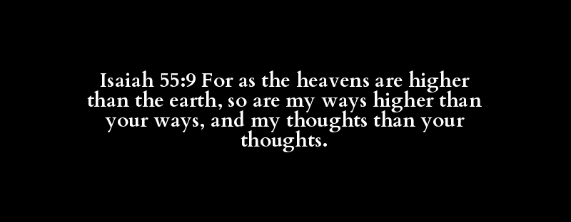 Isaiah 55:9 For as the heavens are higher than the earth, so are my ways higher than your ways, and my thoughts than your thoughts.