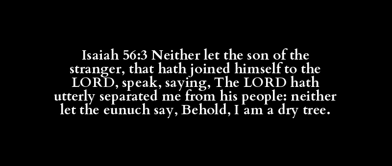 Isaiah 56:3 Neither let the son of the stranger, that hath joined himself to the LORD, speak, saying, The LORD hath utterly separated me from his people: neither let the eunuch say, Behold, I am a dry tree.