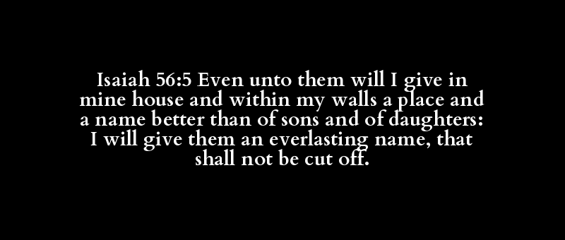 Isaiah 56:5 Even unto them will I give in mine house and within my walls a place and a name better than of sons and of daughters: I will give them an everlasting name, that shall not be cut off.