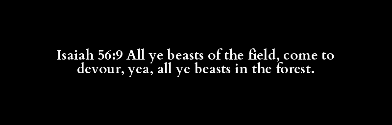 Isaiah 56:9 All ye beasts of the field, come to devour, yea, all ye beasts in the forest.