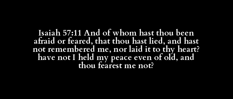 Isaiah 57:11 And of whom hast thou been afraid or feared, that thou hast lied, and hast not remembered me, nor laid it to thy heart? have not I held my peace even of old, and thou fearest me not?