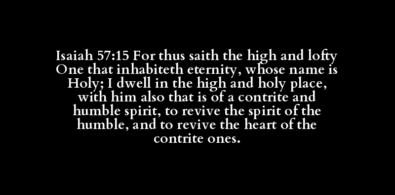 Isaiah 57:15 For thus saith the high and lofty One that inhabiteth eternity, whose name is Holy; I dwell in the high and holy place, with him also that is of a contrite and humble spirit, to revive the spirit of the humble, and to revive the heart of the contrite ones.