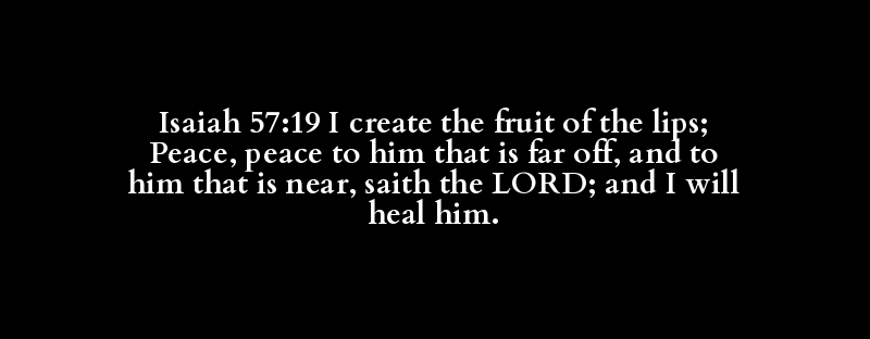 Isaiah 57:19 I create the fruit of the lips; Peace, peace to him that is far off, and to him that is near, saith the LORD; and I will heal him.