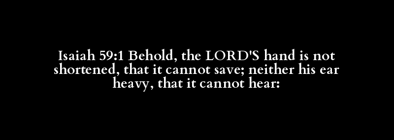 Isaiah 59:1 Behold, the LORD'S hand is not shortened, that it cannot save; neither his ear heavy, that it cannot hear: